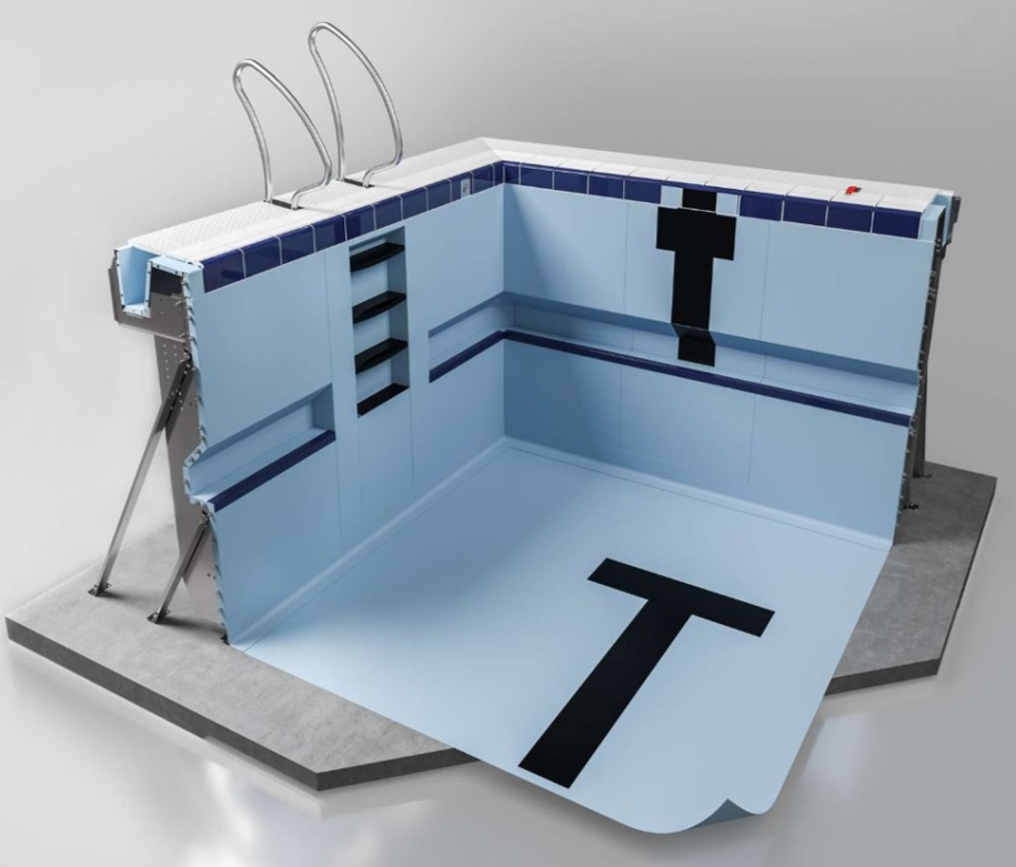Технология позволяет строить бассейны без необходимости изготовления бетонной чаши.Стенки бассейна из нержавеющей ламинированной стали с контрфорсной системой и ребрами жесткости позволяют перенаправить давление воды на плиту, обеспечивая прочность конструкции.
